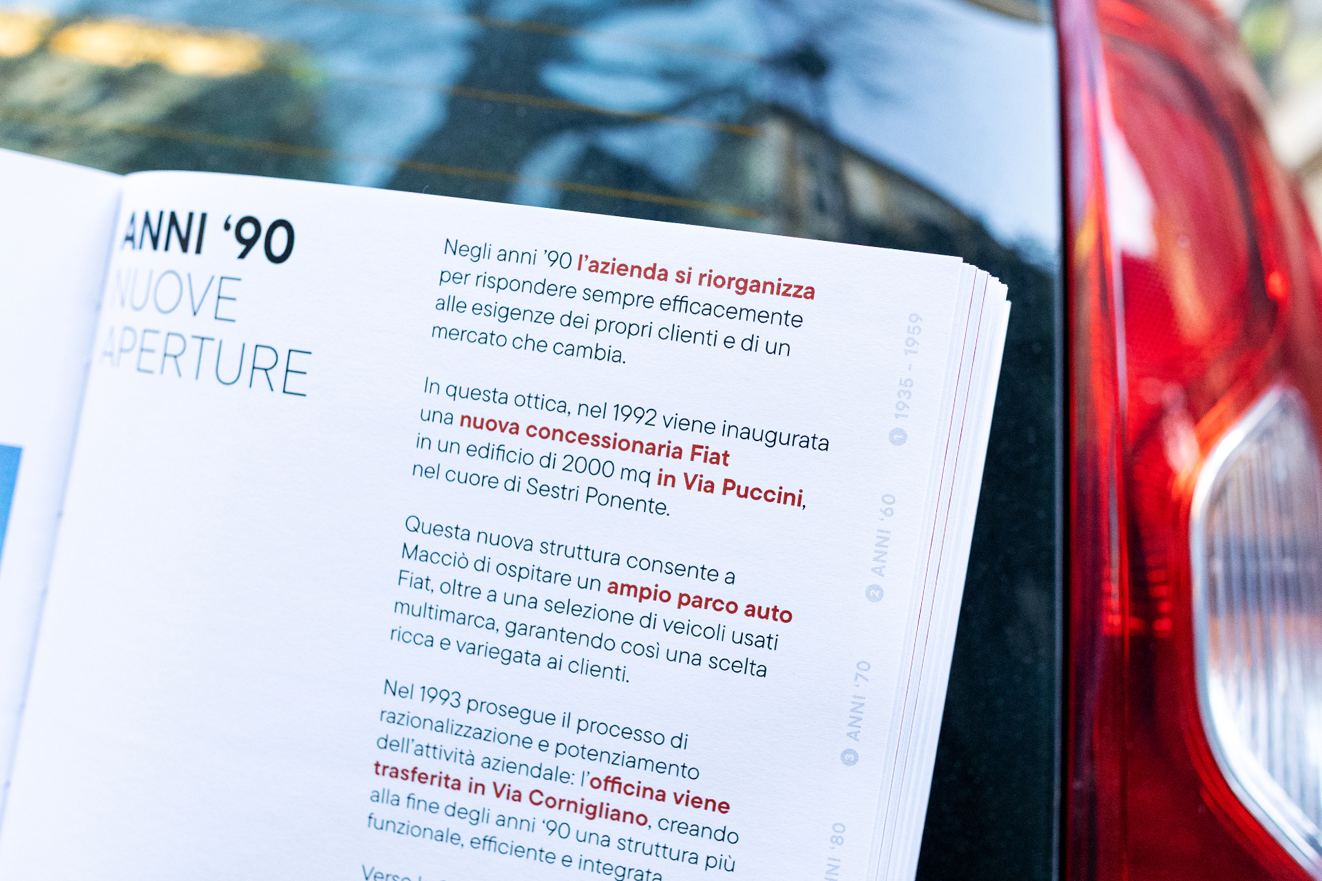 Il libro che prova a raccogliere immagini, pensieri, protagonisti, comete, grandi traguardi, ripensamenti certezze, trasferimenti e obiettivi futuri di una storica azienda famigliare genovese, Macciò.